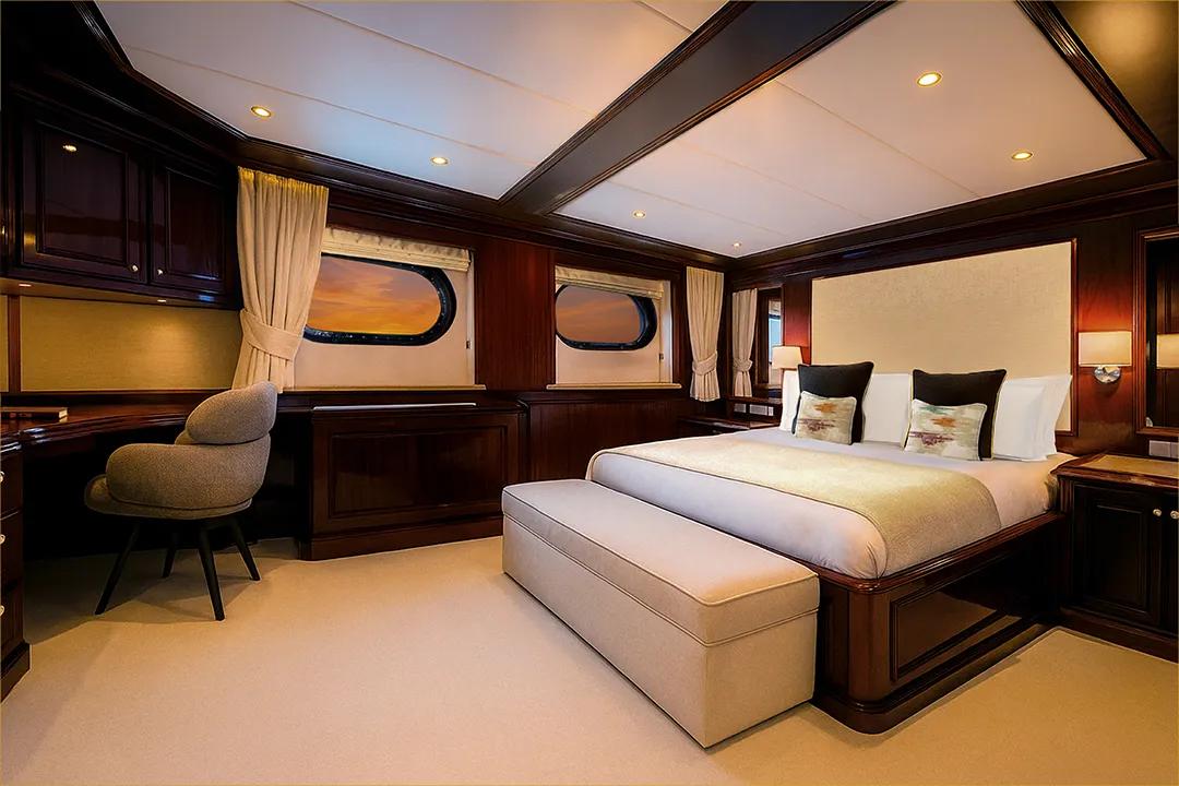 The expedition vessel, Aqua Lares, takes just 26 guests of Captain’s Choice on our privately chartered voyages. Purpose-built for cruising to remote islands, the ship is decked out with wood panelling and elegant furniture. The decidedly European aesthetic continues with its considered use of marble and other refined design elements. Personalised service is assured with a crew-to-guest ratio of at least 1:1.